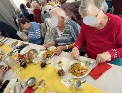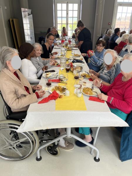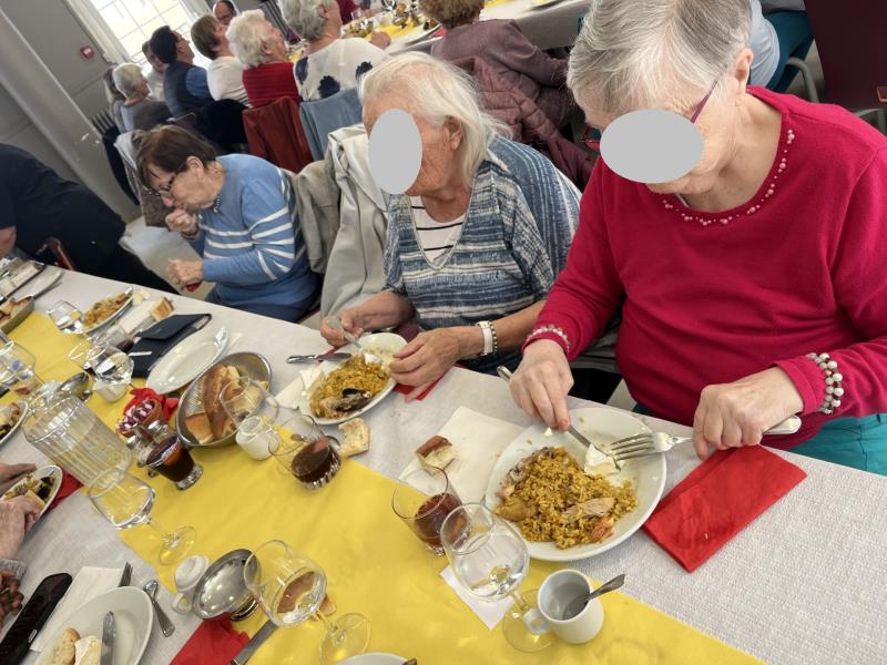 Le CCAS d’Aubergenville nous a chaleureusement invités à un déjeuner dansant au Château du Vivier où les résidents du Cantou, notre Unité Protégée, ont pu savourer une délicieuse paella, un plateau de fromages et un flan au citron en dessert. Ce repas convivial a été l’occasion de partager un moment agréable avec d’autres habitants de la ville. Chants, danses et bonne humeur étaient au rendez-vous, laissant à chacun un souvenir joyeux et coloré.