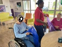 Chants et mouvements avec les instruments de musique et des petits foulard colorés, avec Coumba, les Résidents travaillent la motricité globale dans la bonne humeur.
