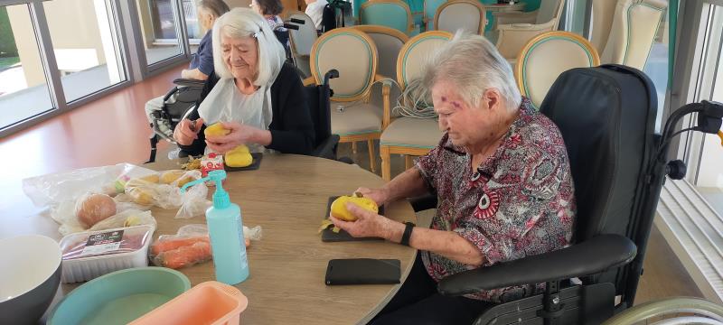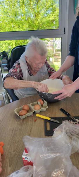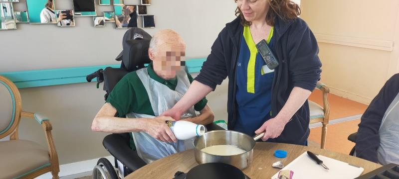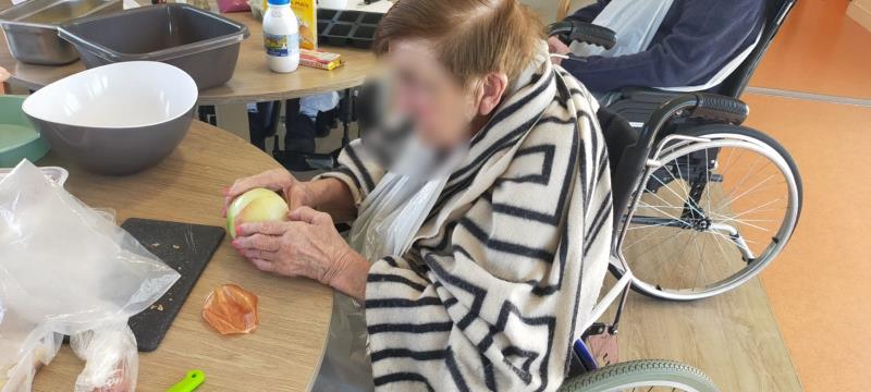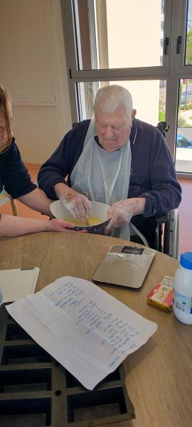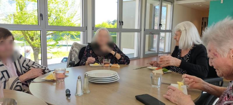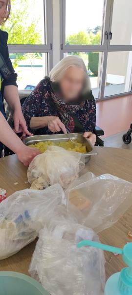 Mardi 07 avril, nous avons eu notre table d'hôte tenue par Alice, notre Responsable hôtelière et Naomi notre Psychomotricienne ; 6 résidents accompagnés par Alice, responsable hébergement et Naomi, psychomotricienne ont préparé puis mangé ensemble un hachis Parmentier, ainsi qu'un flan pour le dessert. L'occasion de mettre en jeu de nombreuses praxies, favoriser les liens relationnels et prendre du plaisir autour d'un moment convivial.