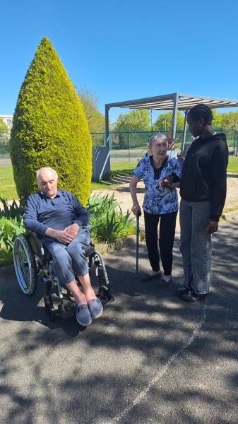 Ce mardi, nous avons profité de ce beau soleil pour se balader dans notre jardin avec Sandrine, notre animatrice.